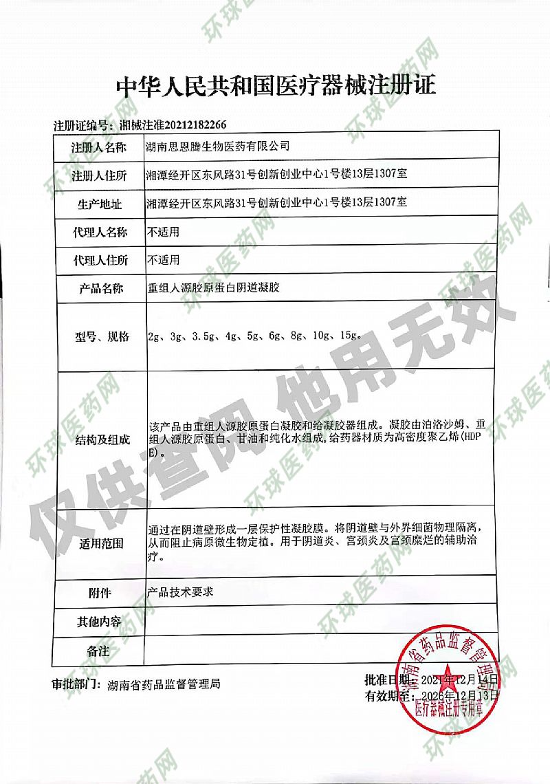 | 產(chǎn)品名稱 | 重組人源膠原蛋白陰道凝膠 |