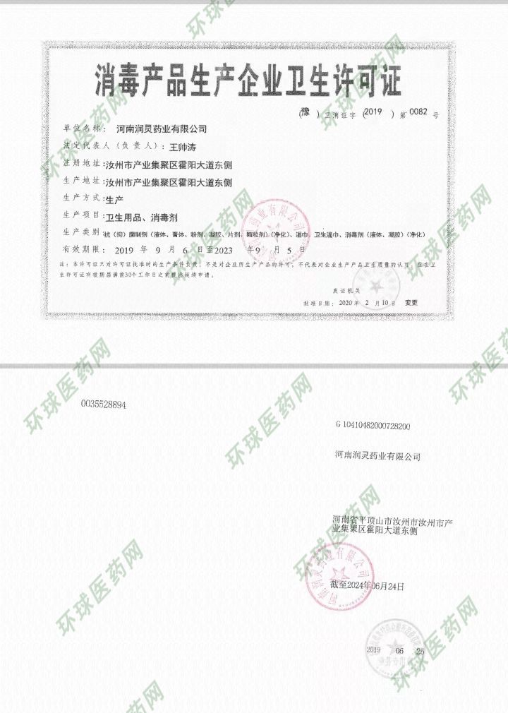 批準文號: 豫衛(wèi)消證字2019第0082號