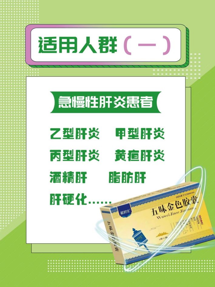| 產(chǎn)品賣點(diǎn) | 五味金色膠囊具有調(diào)理肝、膽、脾胃,保肝護(hù)肝,疏肝理氣,清肝利膽,健脾和胃,止痛,殺菌,抗病毒,退黃等功效。適用于因肝病引起的各類型肝炎、膽囊炎、膽石癥、泌尿系統(tǒng)炎癥與結(jié)石、消化性潰瘍、胃腸道炎癥、消化不良、便秘、惡心、嘔吐口苦等癥。 1.國(guó)家級(jí)新藥 2.起效快,緩解癥狀 3.肝膽脾胃統(tǒng)治,一藥多效,適用人群廣 |