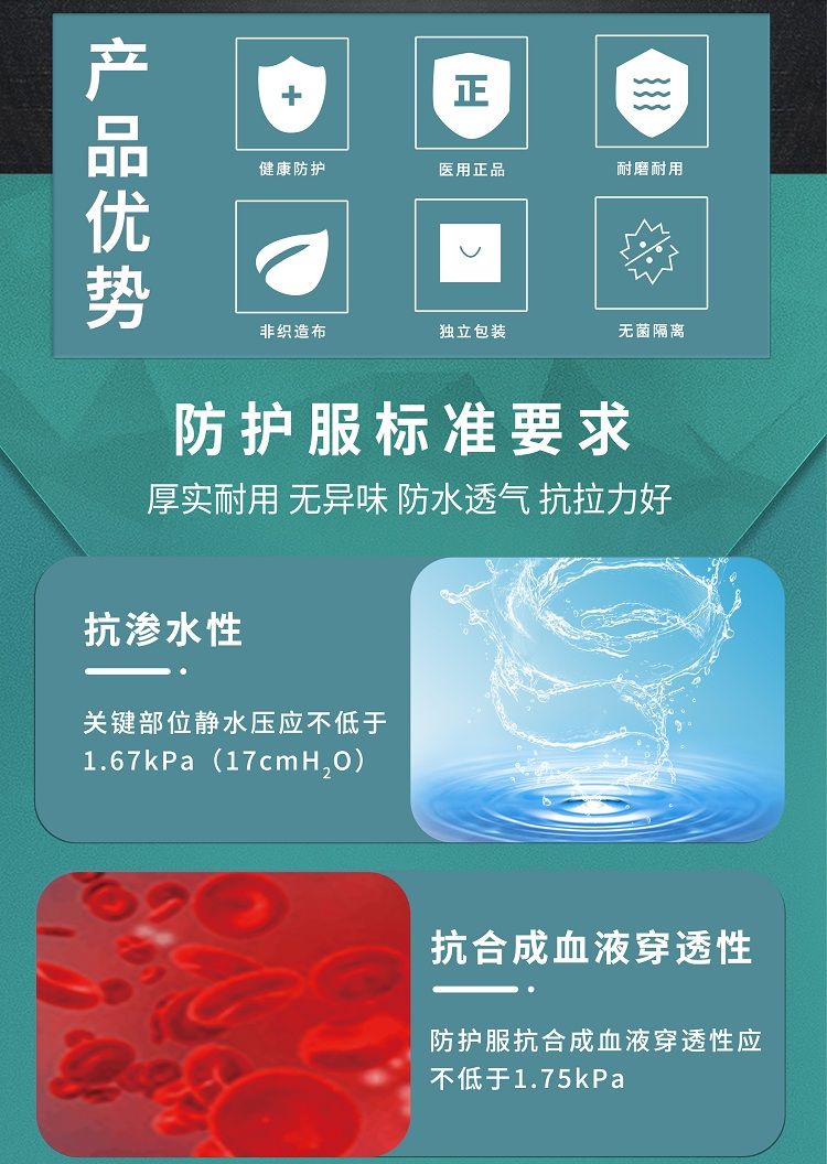 | 作用機(jī)理 | 由SMS無紡布和PP+PE覆膜材料組成,用于臨床醫(yī)務(wù)人員在工作時接觸到的具有潛在感染性的患者血液、體液、分泌物等阻隔、防護(hù)。 |