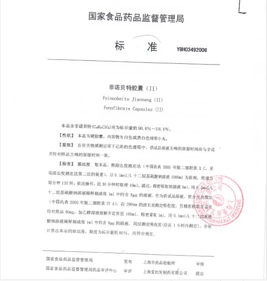 | 英文名稱 | Fenofibrate Sustained Release Capsules |