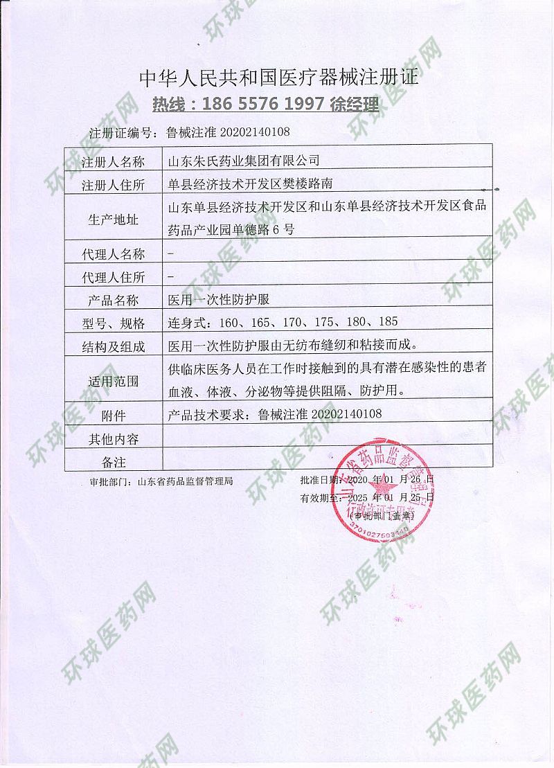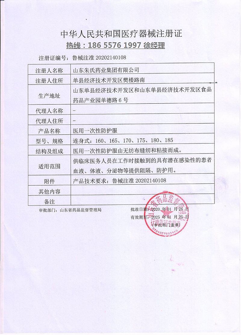 - 山東朱氏藥業(yè)集團(tuán)有限公司,生產(chǎn)廠家,醫(yī)用一次性防護(hù)服,隔離衣,醫(yī)用外科口罩,KN95口罩,全英文包裝口罩。帶CE和FDA證書,可出口,資質(zhì)齊全,食藥監(jiān)局可查。