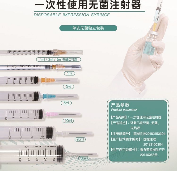 | 產品規(guī)格 | .注射器的規(guī)格有1ml、3ml、5ml、10ml、20ml、30ml、50ml; |