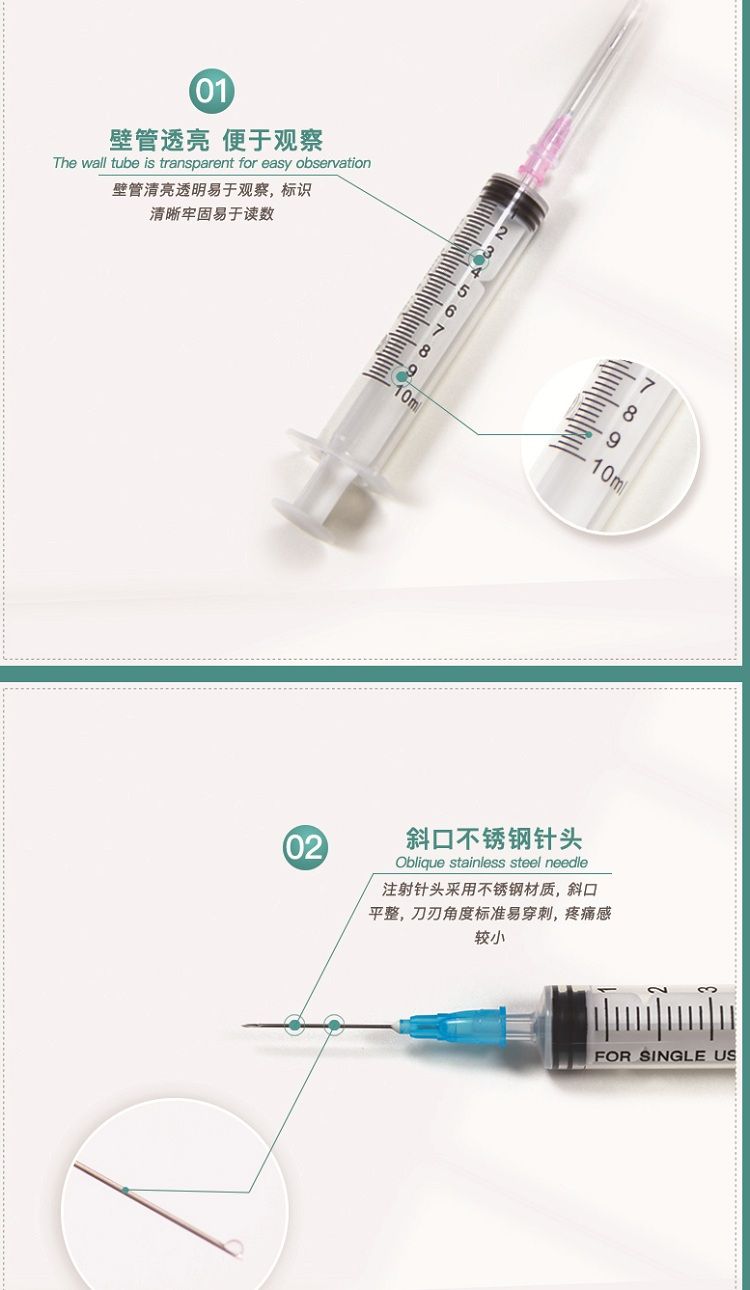 | 使用方法 | 2.1撕開單包裝袋,取出注射器。 2.2去掉注射針保護套,拉動芯桿作來回滑動,擰緊注射針,然后抽入藥液。 2.3注射針向上,緩慢上推芯桿排除空氣。 2.4進行皮下或肌肉注射或進行抽血。 |