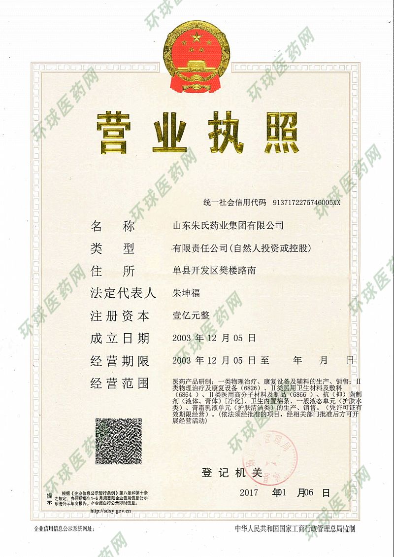 生產(chǎn)企業(yè): 山東朱氏藥業(yè)集團有限公司