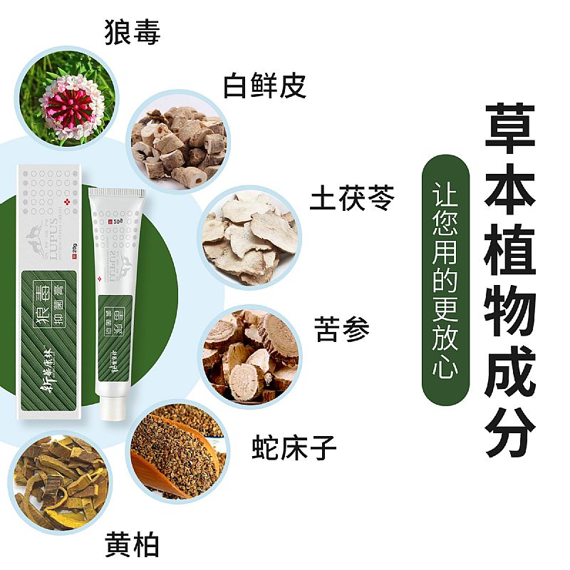 | 主要成分 | 狼毒提取液、土茯苓提取液、白鮮皮提取液、土荊皮提取液、蛇床子提取液、苦參提取液、黃柏提取液,醋酸氯己定,硬脂酸,甘油、冰片,薄荷腦,丙二醇,純化水。 |