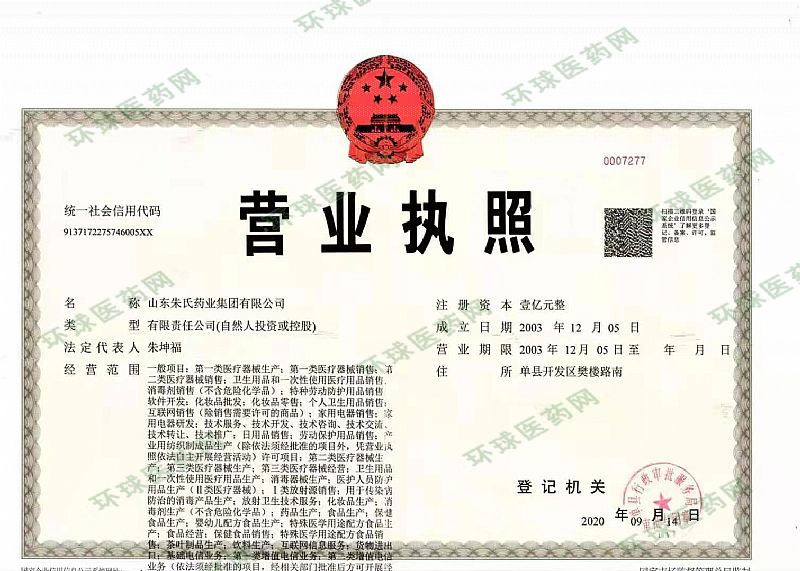 生產(chǎn)企業(yè): 山東朱氏藥業(yè)集團(tuán)有限公司
