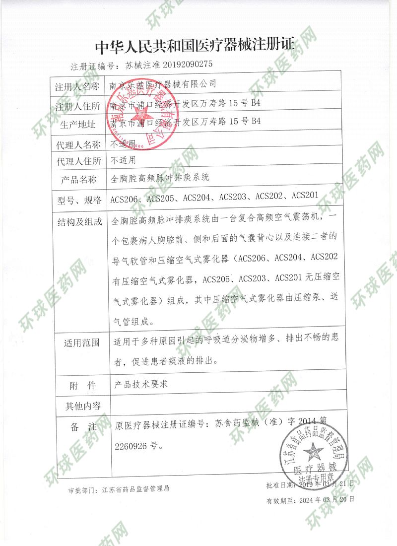 | 注冊(cè)商標(biāo) | 全胸腔高頻脈沖排痰系統(tǒng) |