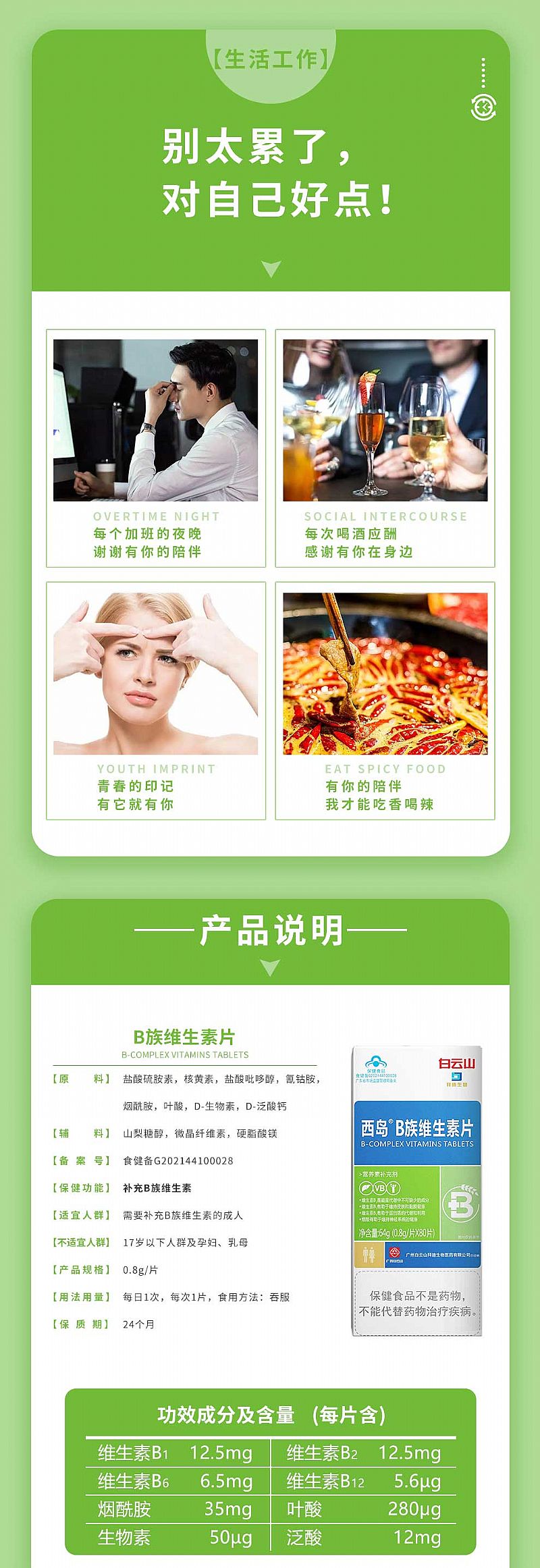 | 產(chǎn)品賣點(diǎn) | 8種B族維生素相互融合作用,高含量,更有效補(bǔ)充B族維生素。 |