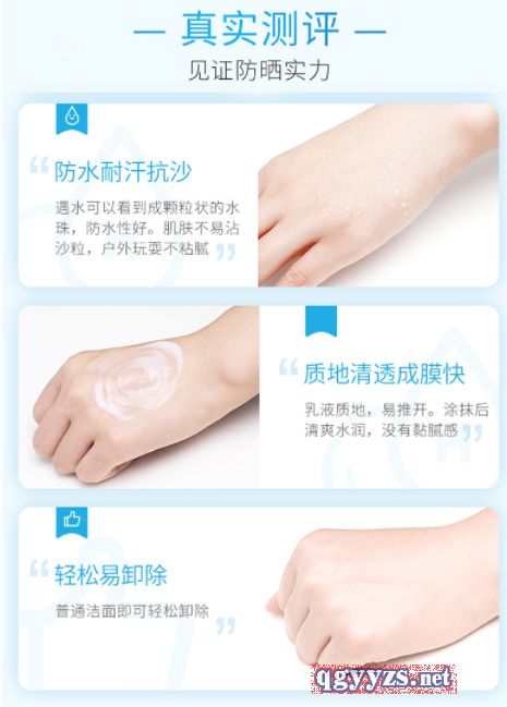 防水耐汗抗沙:遇水可看到成顆粒狀的水珠,防水性好,肌膚不易粘沙粒,戶外玩耍不粘膩!