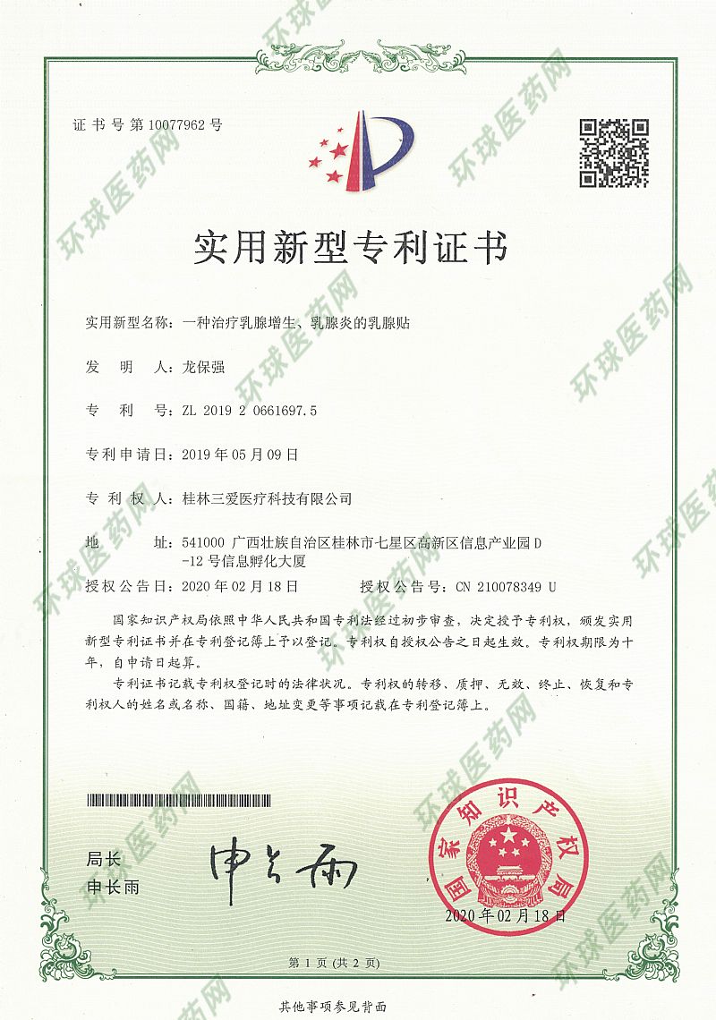 3A乳腺貼專利產(chǎn)品