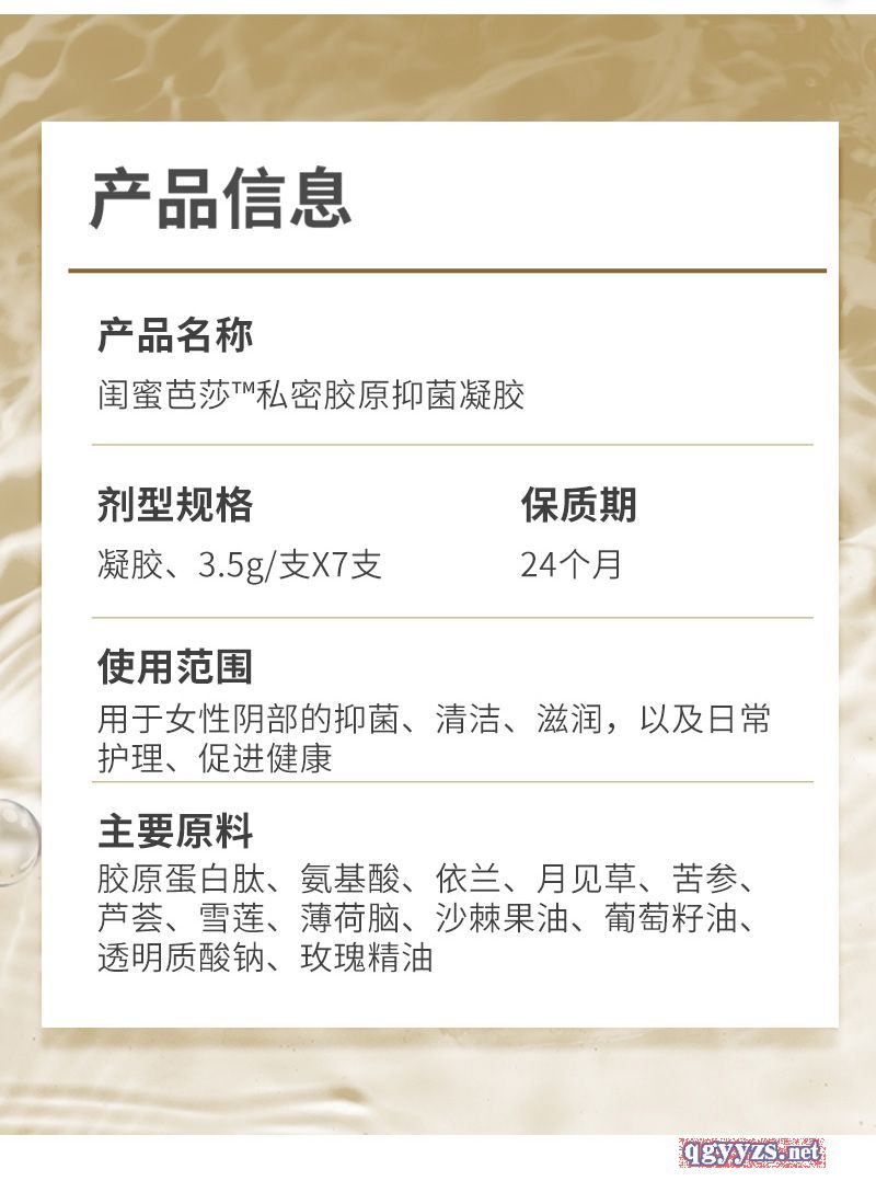 產(chǎn)品名稱: 閨蜜芭莎™;私密膠原抑菌凝膠