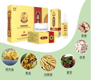 | 主要成分 | 茯苓Poria、紫蘇Basilius、雞內(nèi)金Gallusgallus、苦參tightyellowSophoraRoot、蝮蛇vipera、白鮮皮Cortexdictam、黃連CoptischinensisFranch、黃柏Platycladusorientalis(Linn)Franco、冰片Borneol、醋酸氯已定 |