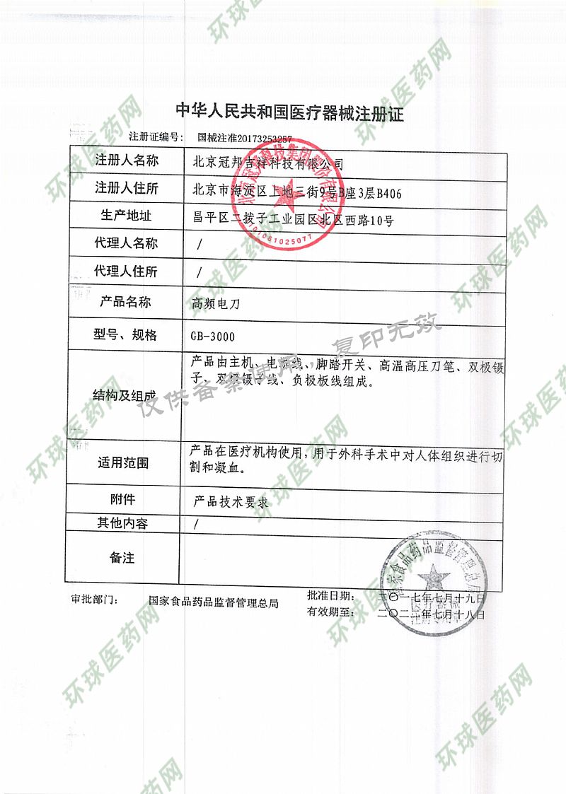 批準文號: 國械注準20173253257 【驗證真?zhèn)?/a>】