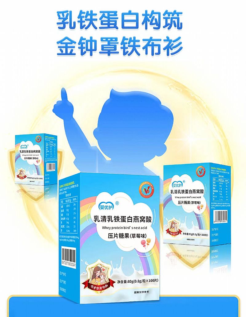 | 產(chǎn)品名稱 | 嬰優(yōu)護牌乳清乳鐵蛋白燕窩酸壓片糖果 |