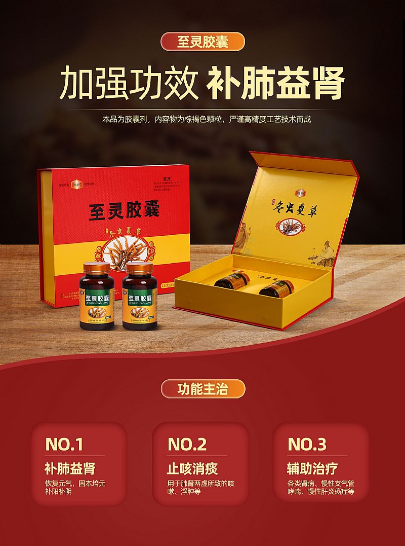 | 補(bǔ)充說明 | 貯 藏方式:密封,置陰涼處。 一、腎藏精、腎主水、腎主納氣,腎主身之骨髓~!一些中老年腰酸腿疼、四肢乏力,很多人會(huì)認(rèn)為缺鈣引起的,其實(shí)是由于腎虛。還有些老年人爬幾層樓梯就氣喘吁吁,性功能下降,晚上尿頻尿多,也是由于腎虧引起的。趕快服用至靈膠囊,一盒~! 二、霧霾天,嬌嫩的肺更需呵護(hù),找不到好的保肺產(chǎn)品,吃至靈膠囊(冬蟲夏草)是不錯(cuò)的選擇~! |