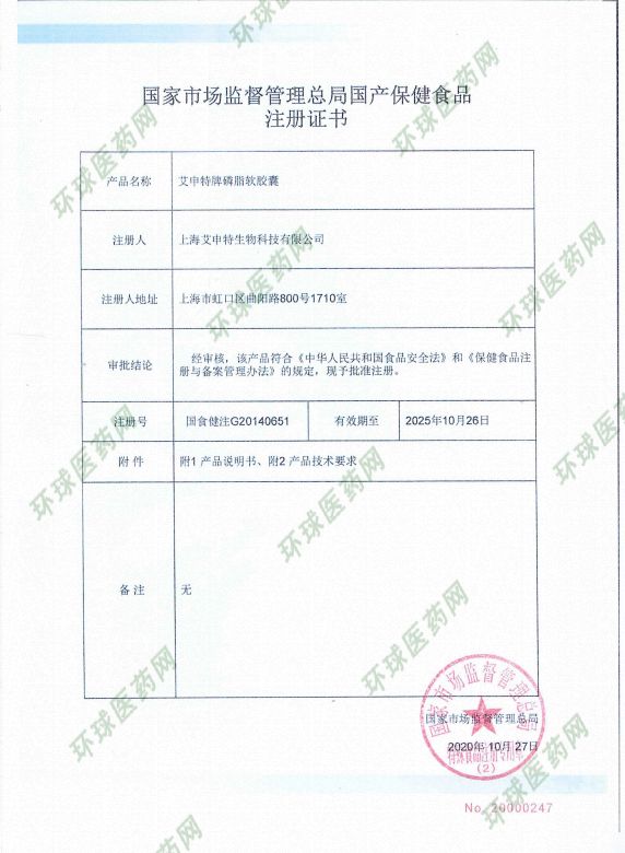 | 產(chǎn)品名稱 | 艾申特牌磷脂軟膠囊 |