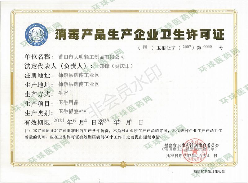 批準(zhǔn)文號(hào): 閩衛(wèi)消證字2007第0030