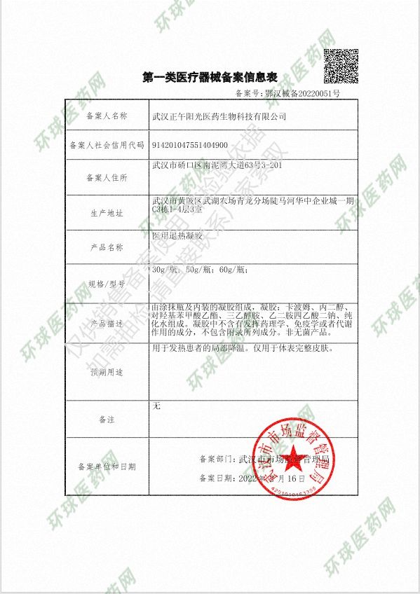 | 產(chǎn)品名稱 | 醫(yī)用退熱凝膠 |