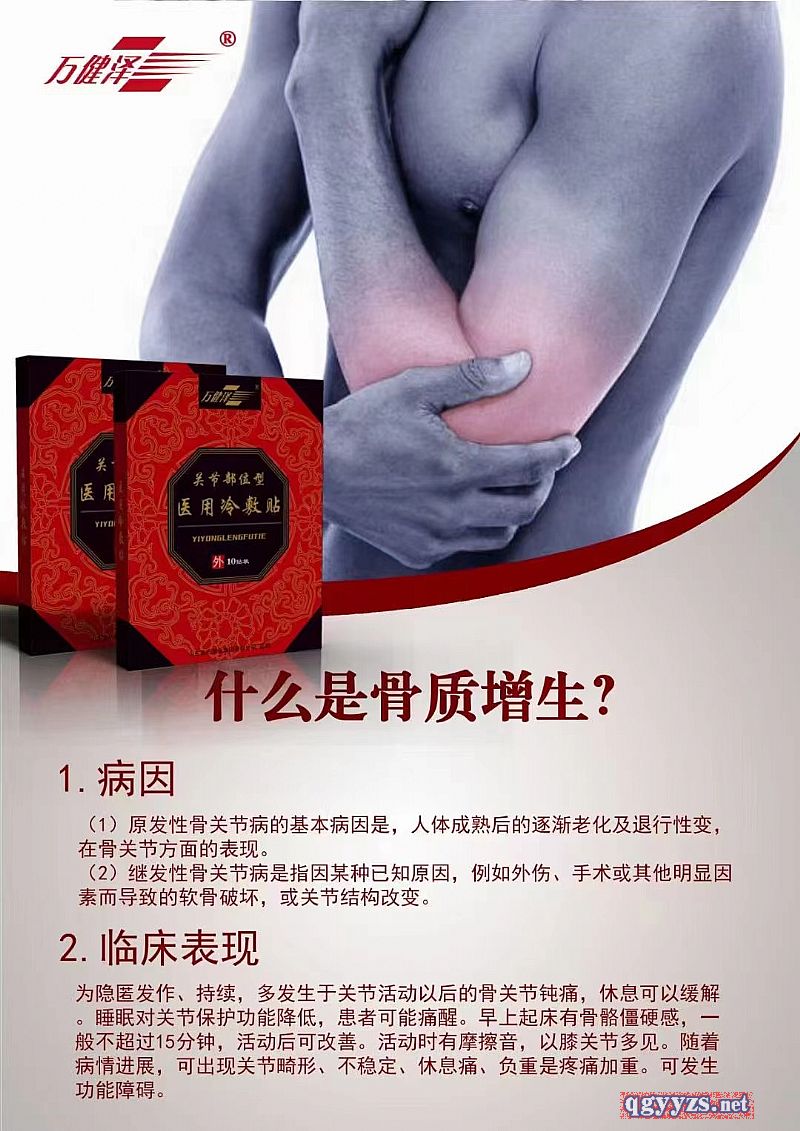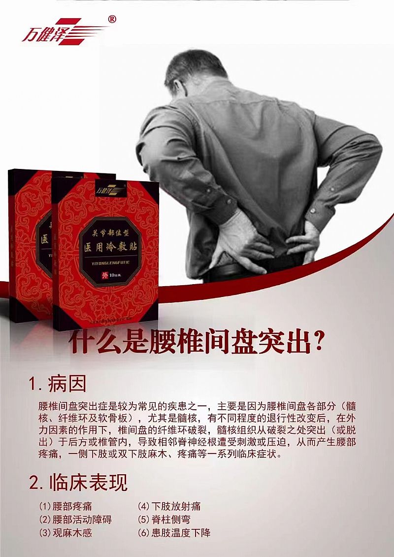 | 作用機(jī)理 | 萬健澤關(guān)節(jié)部位型醫(yī)用冷敷貼是集團(tuán)公司*新上市的骨科膏藥,是針對于終端市場打造的一款性價(jià)比非常高的膏藥,。該產(chǎn)品無紡布采用韓國進(jìn)貨無紡布,該產(chǎn)品可以持續(xù)貼敷48小時(shí),第6至10小時(shí)是產(chǎn)品效果*佳時(shí)間段, |