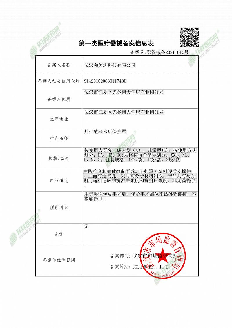 批準(zhǔn)文號: 鄂漢械備20211016 【驗(yàn)證真?zhèn)?/a>】