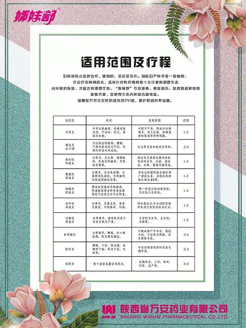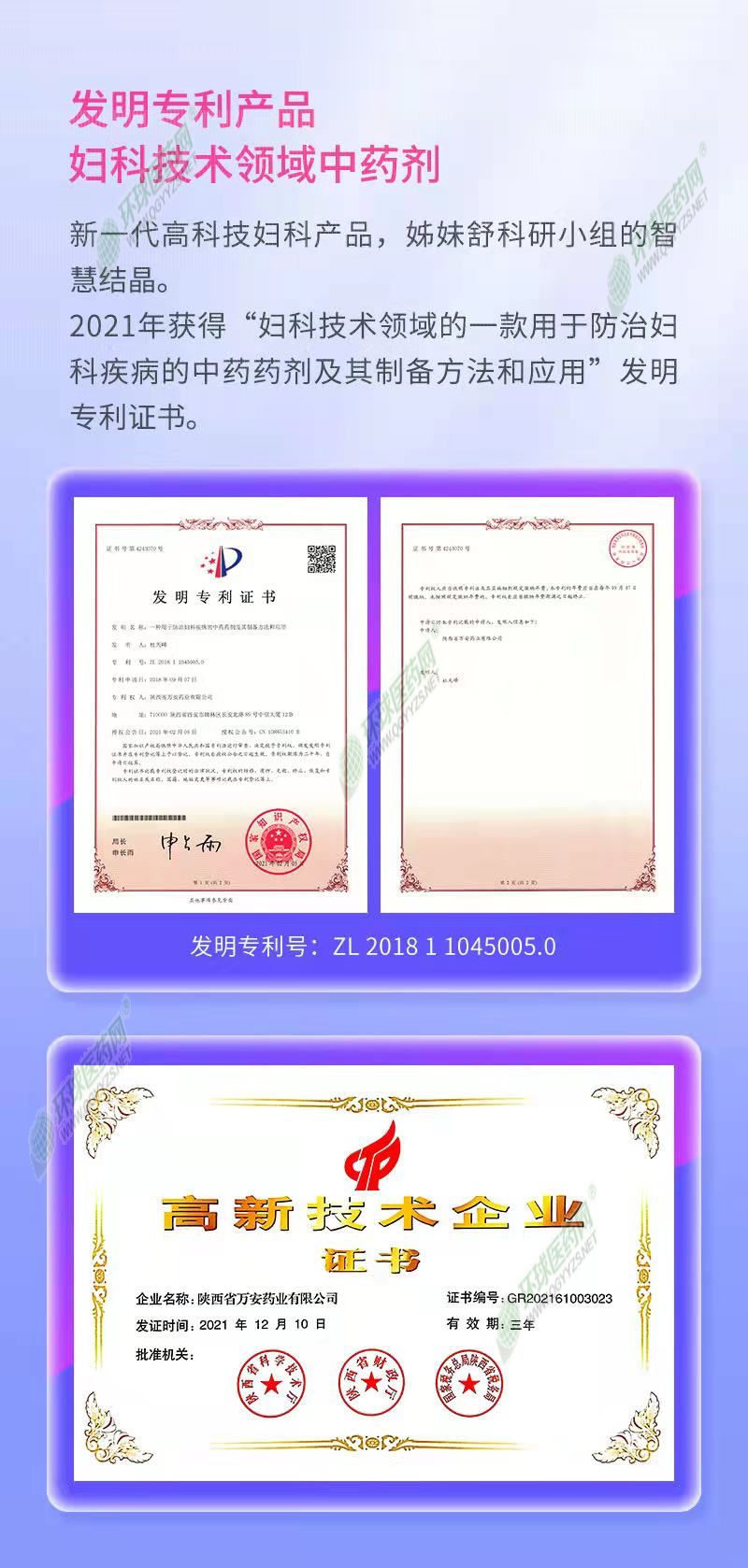 | 補(bǔ)充說明 | 姊妹舒產(chǎn)品優(yōu)勢: 1、女性生殖健康市場需求崛起:女性經(jīng)濟(jì)的崛起,由外而內(nèi)的健康意識(shí)不斷增強(qiáng),女性保養(yǎng)需求增加; 2、利 潤 高:低成本、高毛利、多渠道; 3、新 科 技:獲得國家中藥發(fā)明專利產(chǎn)品,中西醫(yī)并舉的產(chǎn)品; 4、基 礎(chǔ) 好:30年沉淀企事業(yè)單位工會(huì)組織,被評(píng)為“女職工勞動(dòng)衛(wèi)生保護(hù)專用品”30年女職工使用6000萬人次,首次進(jìn)入市場基礎(chǔ)好,市場潛力巨大; 5、附加值高:企業(yè)一對一跟單服務(wù),聘請中華全國總工會(huì)女職委臨床經(jīng)驗(yàn)30年的婦產(chǎn)科主任醫(yī)師,針對不同渠道的產(chǎn)品科技、市場推廣及應(yīng)用進(jìn)行專業(yè)的終端人員培訓(xùn)指導(dǎo); 6、功效全:功效涵蓋女性生殖系統(tǒng)炎癥、血癥、調(diào)理、抗衰領(lǐng)域“專精特新”的女性生殖健康全周期的科技產(chǎn)品。 |