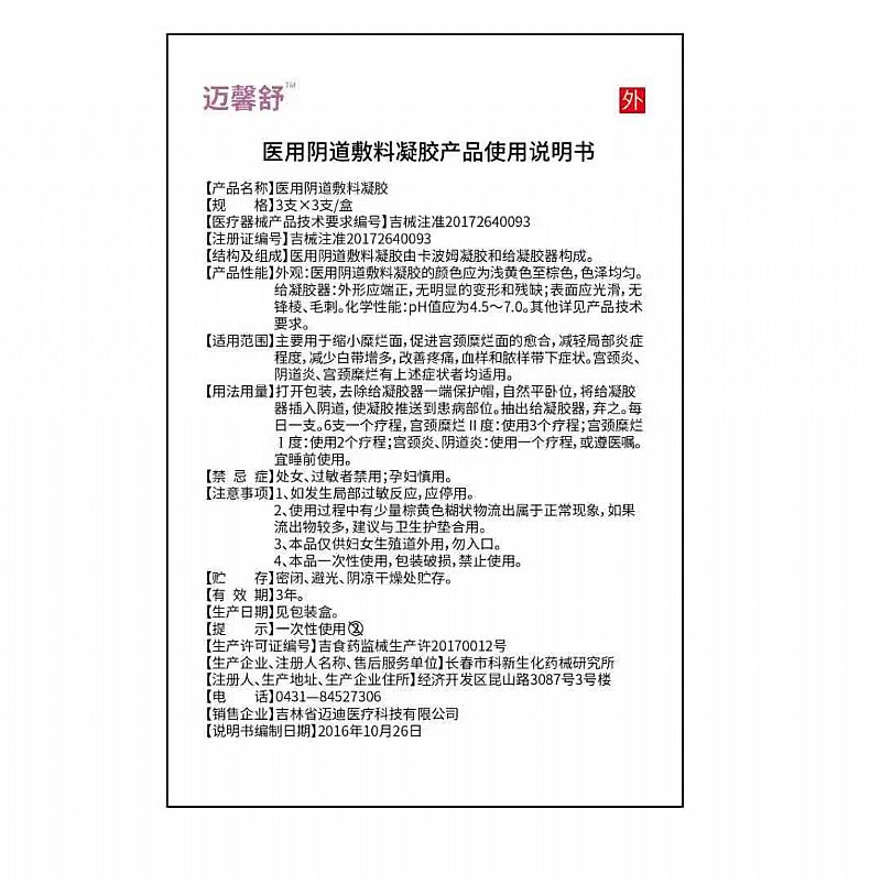 | 產(chǎn)品名稱 | 醫(yī)用陰道敷料凝膠 |
