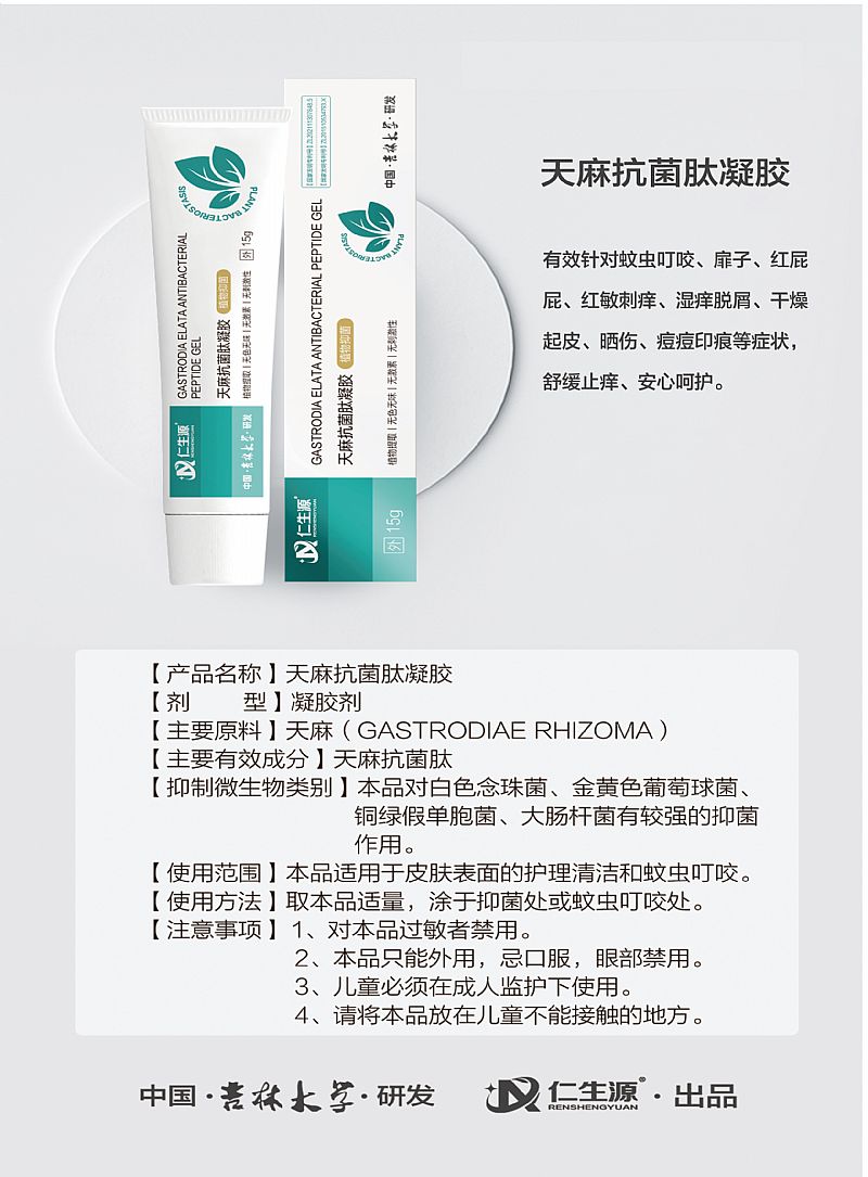 | 產(chǎn)品名稱 | 天麻抗菌肽凝膠 |
