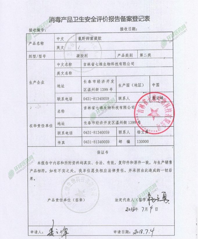 批準文號: 吉衛(wèi)消證字2017第0013號