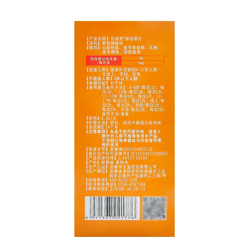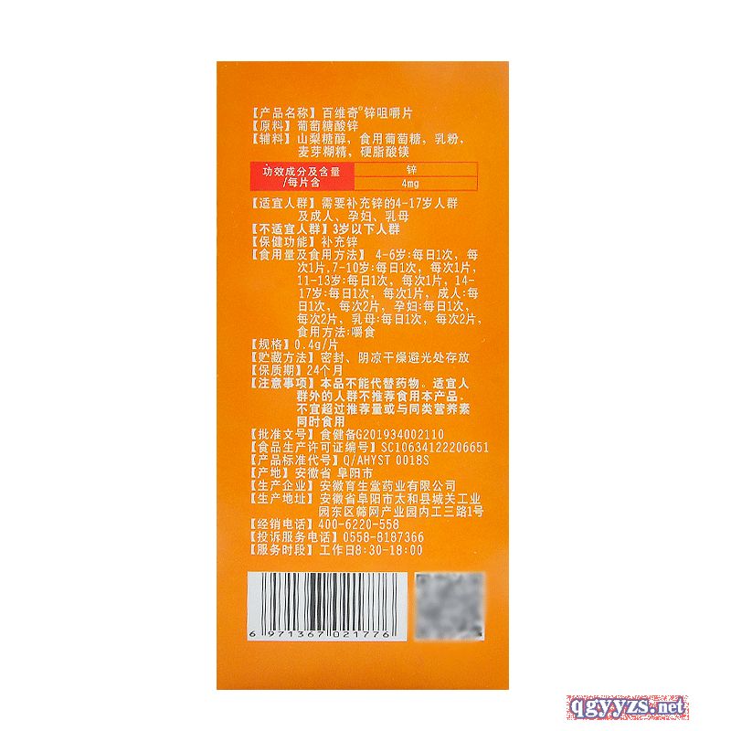產(chǎn)品名稱: 百維奇鋅咀嚼片