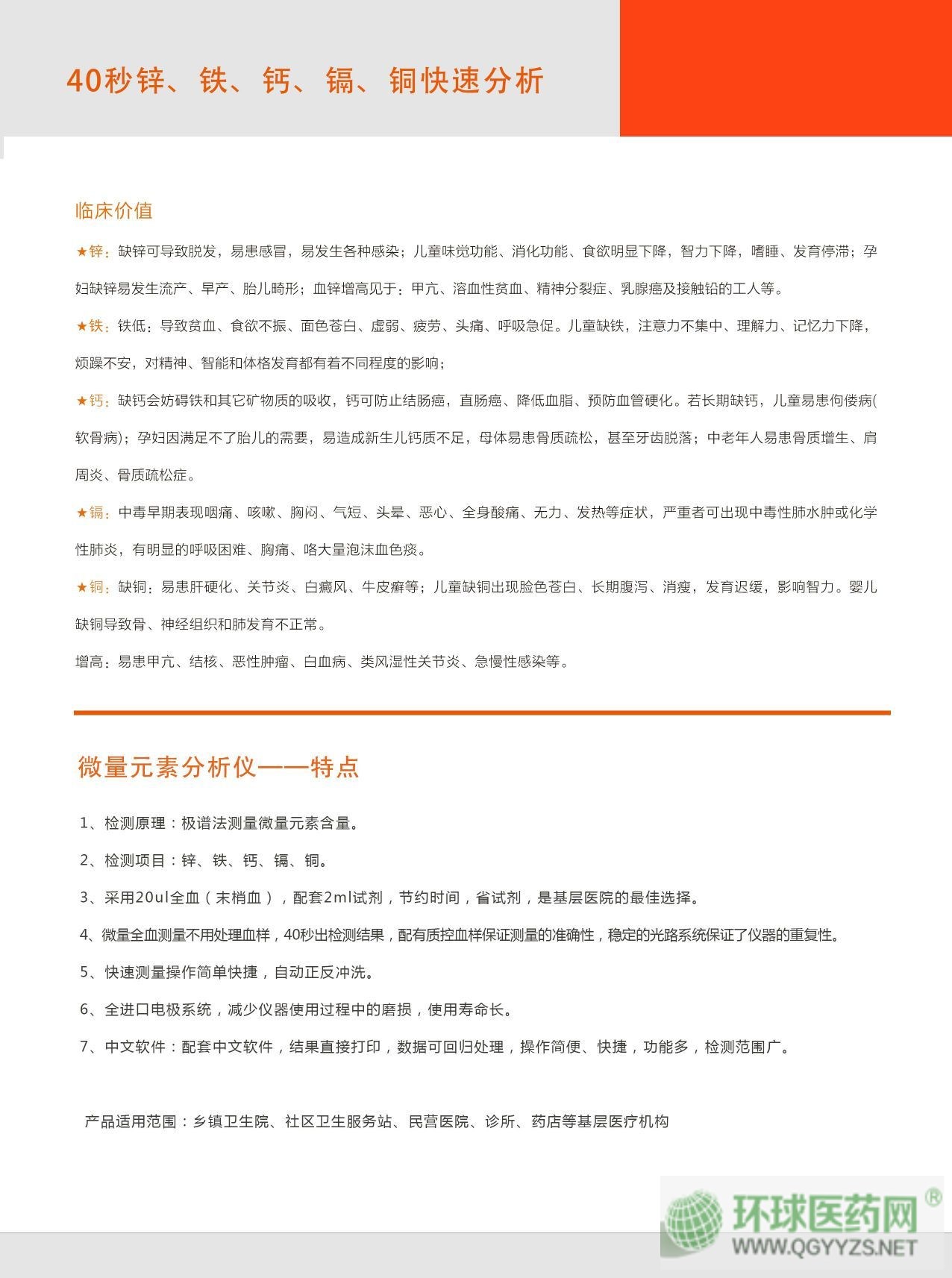 | 產(chǎn)品用途 | 用于檢測(cè)血液中的鋅、鐵、鈣、鎂、銅、鉛、鎘、錳等微量元素。 |