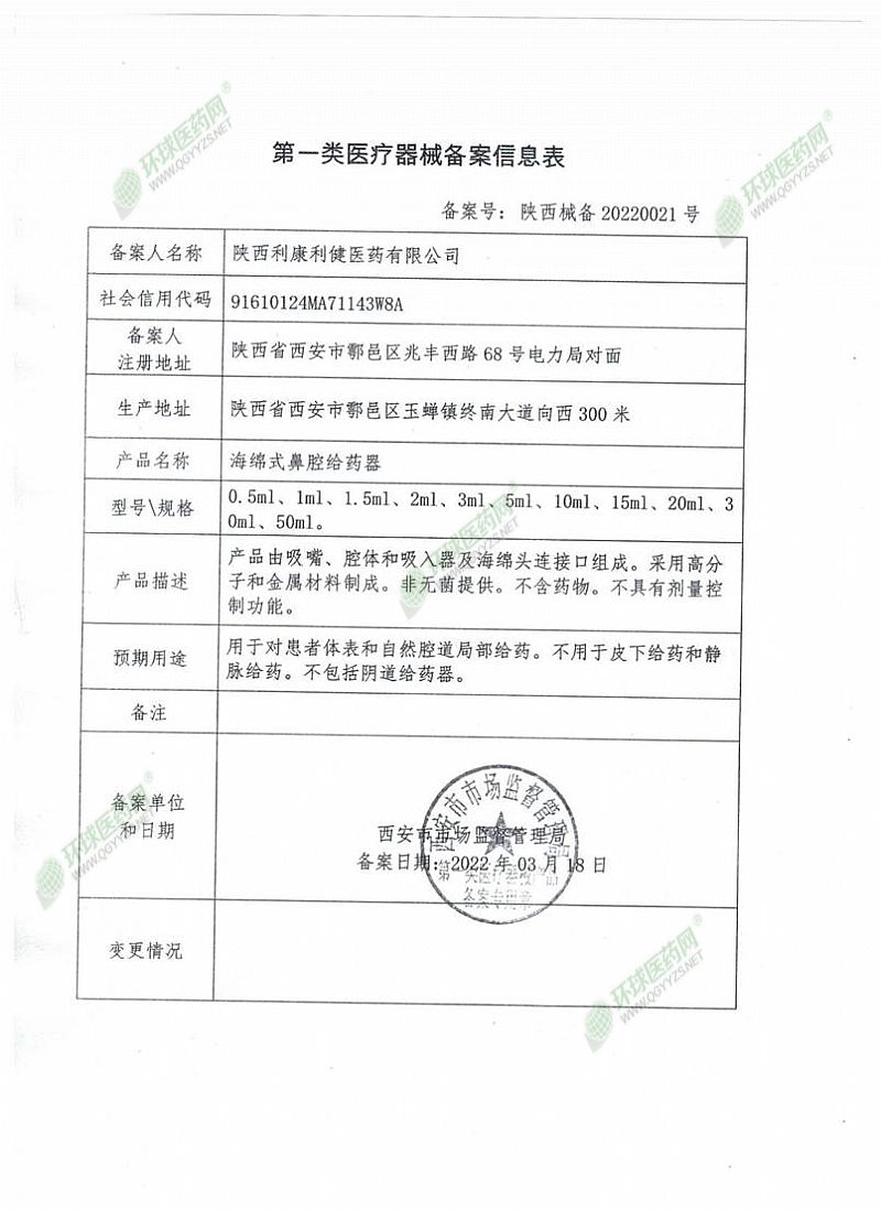 | 注冊(cè)商標(biāo) | 海綿式鼻腔給藥器 |