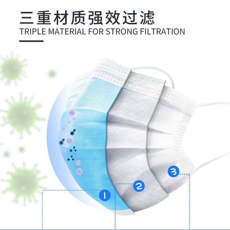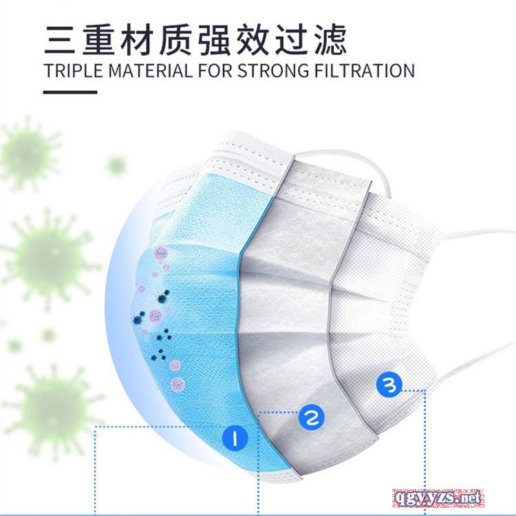 | 主要成分 | 由表層、中間層、底層、口罩帶、鼻夾組成。表層材料為聚丙烯紡粘布、中間層材料為聚丙烯噴絲法制成的過(guò)濾熔噴布、底層材料為聚丙烯紡粘布、口罩帶為滌綸線(xiàn)和少量氨綸線(xiàn)針織而成、鼻夾為可彎折可定型的聚丙烯制成。 |