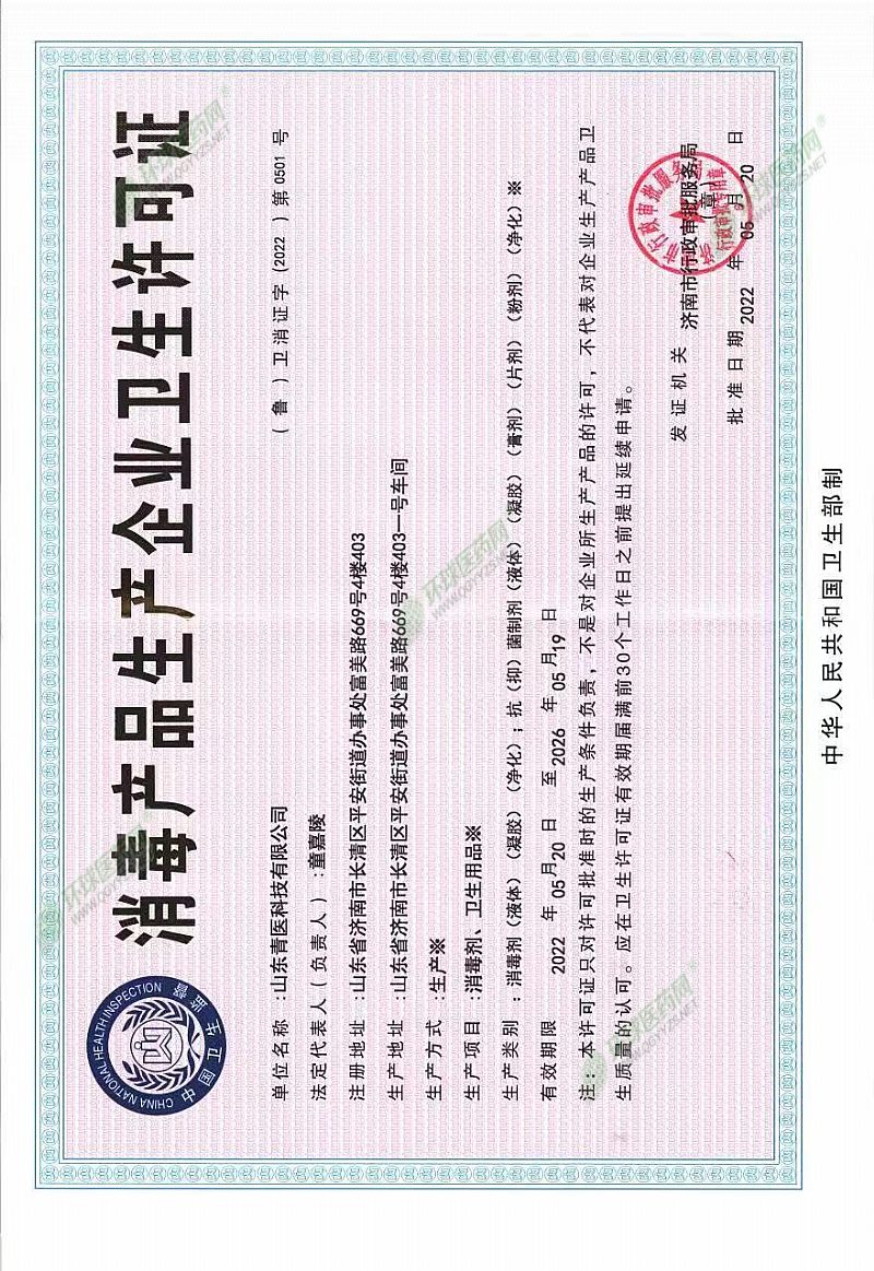批準(zhǔn)文號: 魯衛(wèi)消證字2022第0501號