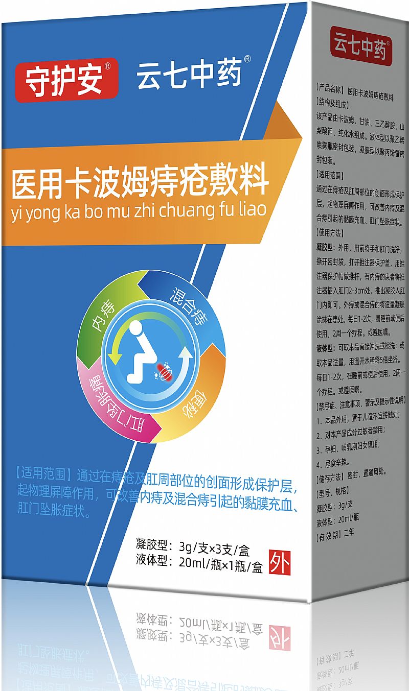 | 產(chǎn)品名稱 | 守護(hù)安®;云七中藥®;醫(yī)用卡波姆痔瘡敷料 |