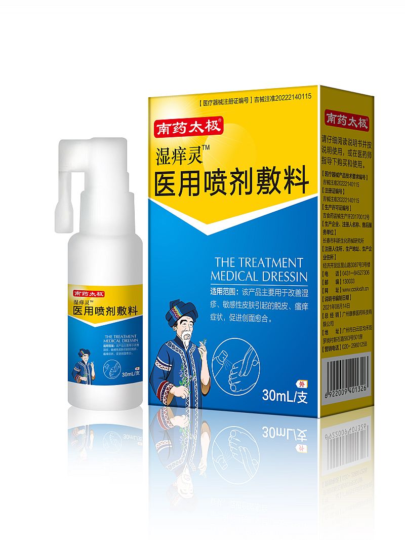 | 產(chǎn)品名稱 | 南藥太極濕癢靈™;醫(yī)用噴劑敷料 |