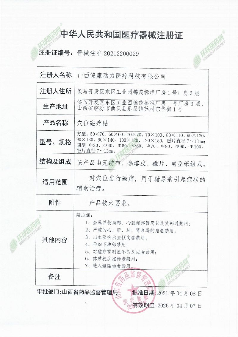 生產(chǎn)企業(yè): 山西健康動(dòng)力醫(yī)療科技有限公司