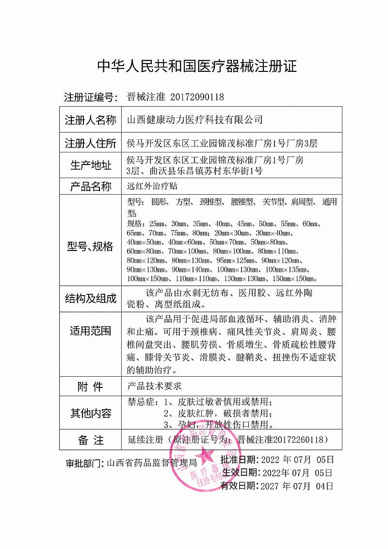 生產(chǎn)企業(yè): 山西健康動力醫(yī)療科技有限公司