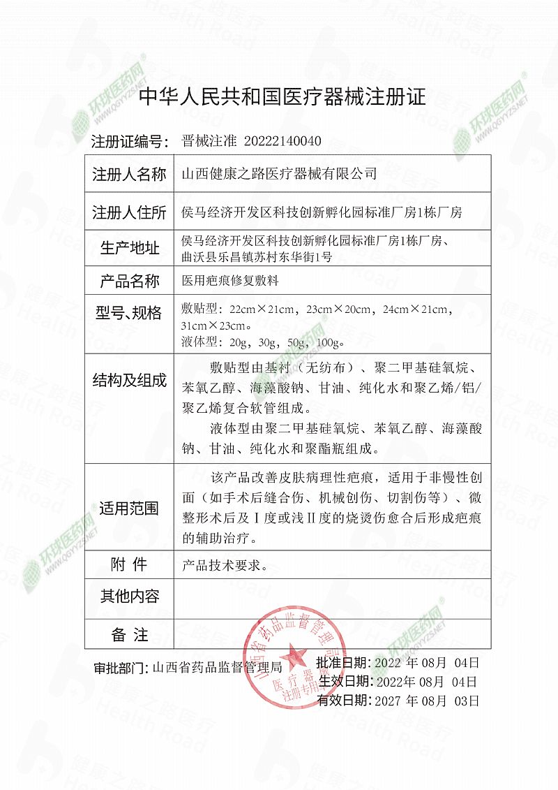 生產(chǎn)企業(yè): 山西健康之路醫(yī)療器械有限公司