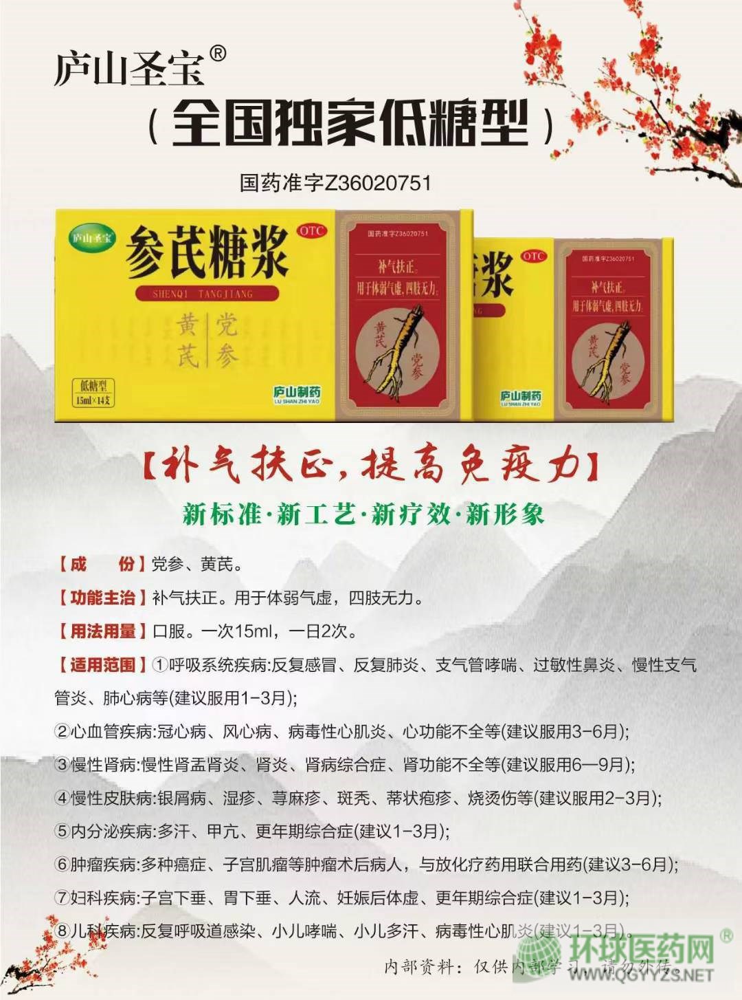 | 功能主治 | 補(bǔ)氣扶正。用于體弱氣虛,四肢無力。 |
