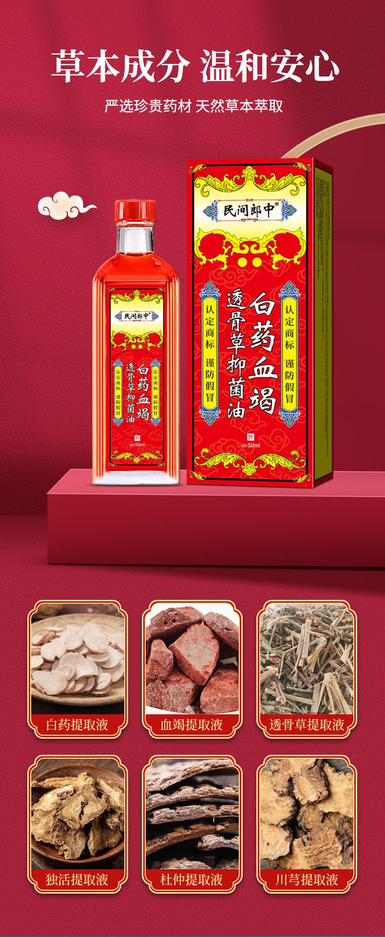 產(chǎn)品名稱: 白藥血竭透骨草抑菌油
