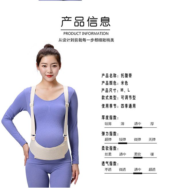 | 產(chǎn)品用途 | 1、托腹帶可以幫助孕婦托起腹部,減少孕婦的壓力感。 2、托腹帶可以幫助孕婦保持正確姿勢,使孕婦在懷孕中仍然動作輕快,還可以使胎兒有安定的感覺。 3、托腹帶在改善孕晚期因重力作用于腹部,腰背部努力維持姿勢所造成的腰痛、背疼等方面也有明顯作用。 4、托腹帶提供一定的保溫功效,可保護腹中胎兒,使胎兒在溫暖的環(huán)境下成長。 5、可預防腹壁松弛和下垂(腹部、子宮向前方下垂)。 |