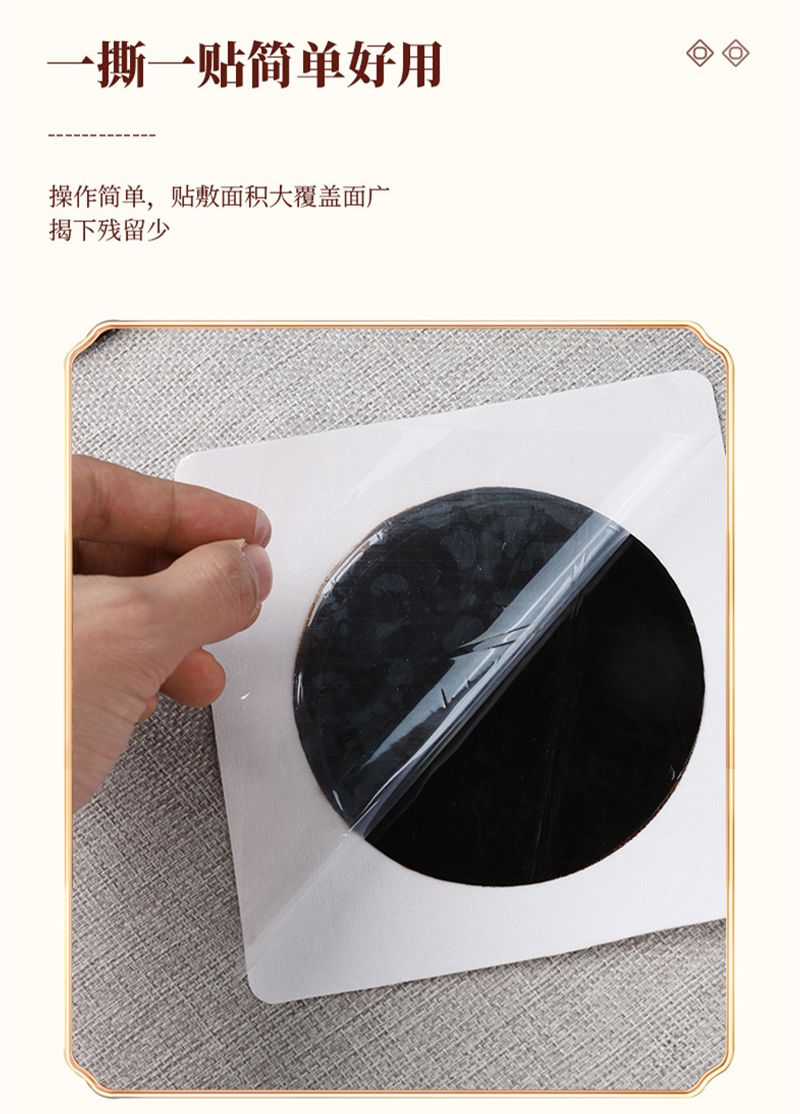 | 用法用量 | 外用。撕去保護(hù)膜,用開水壺或者吹風(fēng)機(jī)加熱至軟化;待膏體降至合適溫度貼敷于患者處避免燙傷,每次貼敷6-8小時(shí);重復(fù)使用時(shí)重新加熱,對折幾次后貼敷即可,每貼可反復(fù)使用3-5天。 |