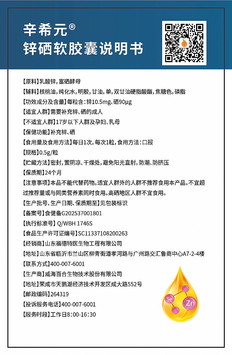 | 補充說明 | [適宜人群]需要補充鋅、硒的成人 [不適宜人群]17歲以下人群及孕婦、乳母 [保健功能]補充鋅、硒 貯藏方法]密封,置陰涼、干燥處,避免陽光直射,防潮、防擠壓 [保質期]24個月 [注意事項]本品不能代替藥物。適宜人群外的人群不推薦食用本產品。不宜超過推薦量或與同類營養(yǎng)素同時食用。高硒地區(qū)人群不宜食用。 [生產批號、生產日期、保質期至]見包裝標識 |