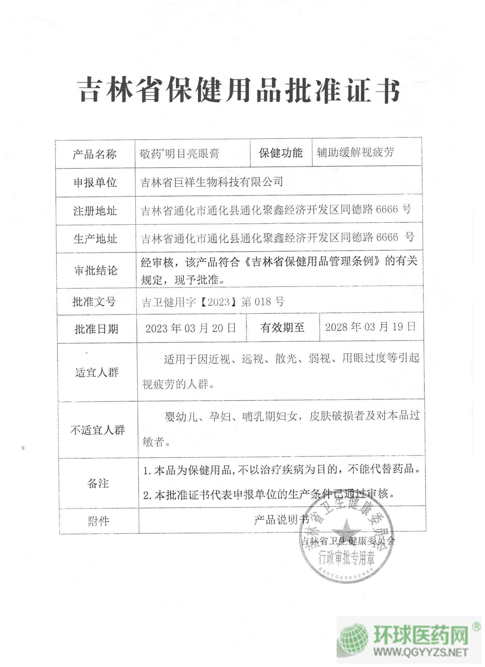 批準(zhǔn)文號: 吉衛(wèi)健用字【2023】第018號 【驗證真?zhèn)?/a>】