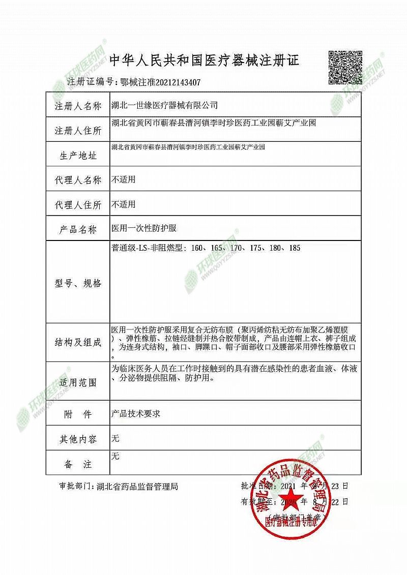 生產(chǎn)企業(yè): 湖北一世緣醫(yī)療器械有限公司