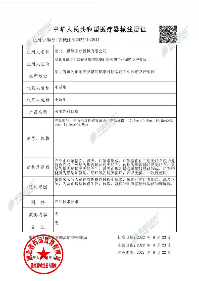 生產(chǎn)企業(yè): 湖北一世緣醫(yī)療器械有限公司
