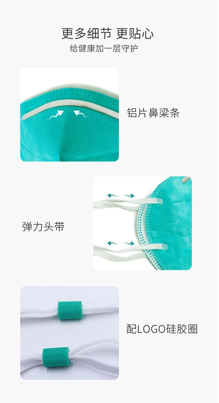| 使用方法 | 1.打開(kāi)產(chǎn)品包裝,取出口罩,將有鼻夾一端向上,有包邊一面朝外,輕拉耳帶將口罩掛于雙耳,應(yīng)避免手部接觸口罩內(nèi)側(cè)。 2.輕按鼻夾使其與鼻梁貼合,然后按住鼻夾。將口罩下端向下拉至下頜處,使折疊邊完全展開(kāi)。 3.整理口罩佩戴效果,使口罩能罩住使用者的鼻、口至下頜并保證口罩的密閉性。 |