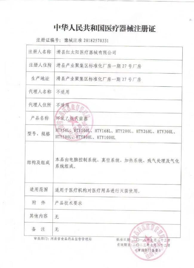 | 英文名稱 | Red sun ethylene oxide sterilizer HTY100L |