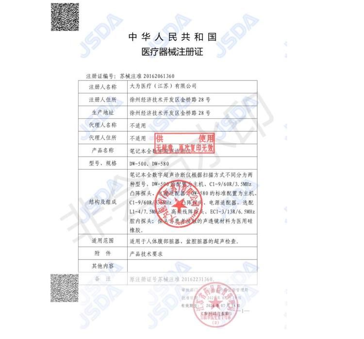 生產(chǎn)企業(yè): 大為醫(yī)療(江蘇)有限公司